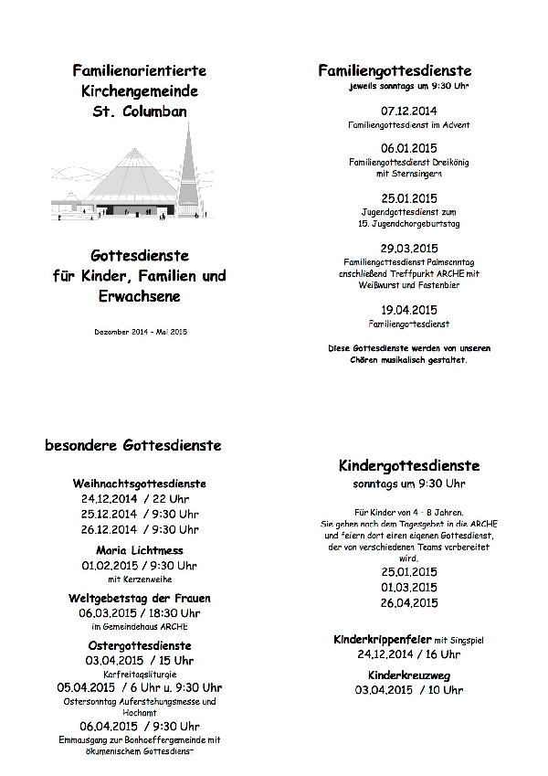 Familiengottesdienste Dez. 2014 bis Mai 2015