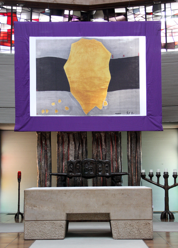 Dieses 20. Misereor-Hungertuch unterscheidet sich von seinen Vorgängern durch Reduktion auf wenige Formen und Farben. Es ermöglicht einen meditativen Zugang.