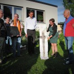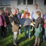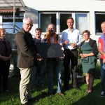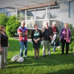 Eine kleine Abordnung der „Green Butterflies“ aus Andora an der ligurischen Riviera unter Führung von Signora Manuela Bertoncini besuchte unsere Gemeinde. Die „Green Butterflies“ sind ein Verein, der sich für die Erhaltung kultureller Identitäten in der Sprache, Architektur und Kunst engagieren. Im Rahmen ihres Projekts „Peregrinus“ pilgern sie zu den Wirkungsstätten des Heiligen Columbans von Bangor im Norden Irlands bis nach Bobbio in Italien. Nach einem gemeinsamen Gottesdienst mit Pfarrer Markus Hirlinger übergaben sie eine Schiefertafel mit der stilisierten Brücke über die Trebbia in Bobbio und ein kunstvoll gestaltetes Kreuz auf einem aus dem 19 Jahrhundert stammenden Leinentuch. Im Gegenzug durften wir ihnen ein Stück Erde aus unserem Pfarrgarten mitgeben, das sie zusammen mit Erde aus allen anderen Pilgerorten in Bobbio sichtbar ausstellen wollen – völkerübergreifende Freundschaft. Der Besuch klang mit einem gemeinsamen, leckeren mediterranen Abendessen in der Arche aus. Wir freuen uns auf weitere Begegnungen mit den Green Butterflies!