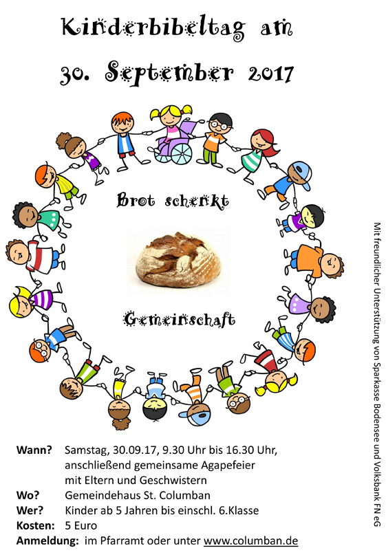 Herzliche Einladung an alle Kinder von 5 Jahren bis einschließlich 6. Klasse zu unserem Kindererlebnisbibeltag.
