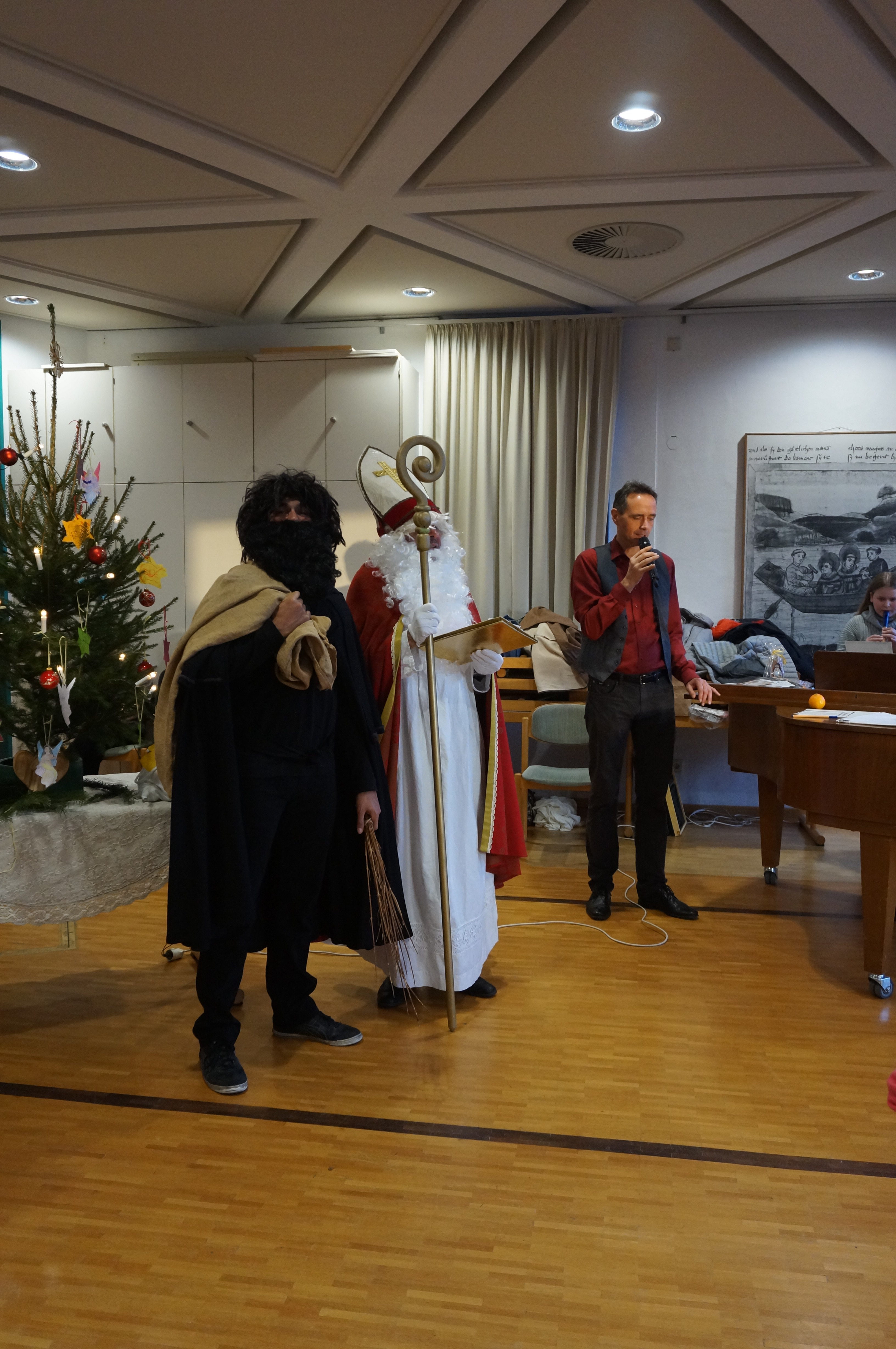 Es wurde gemeinsam ein Christbaum geschmückt und der Nikolaus kam mit Geschenken.