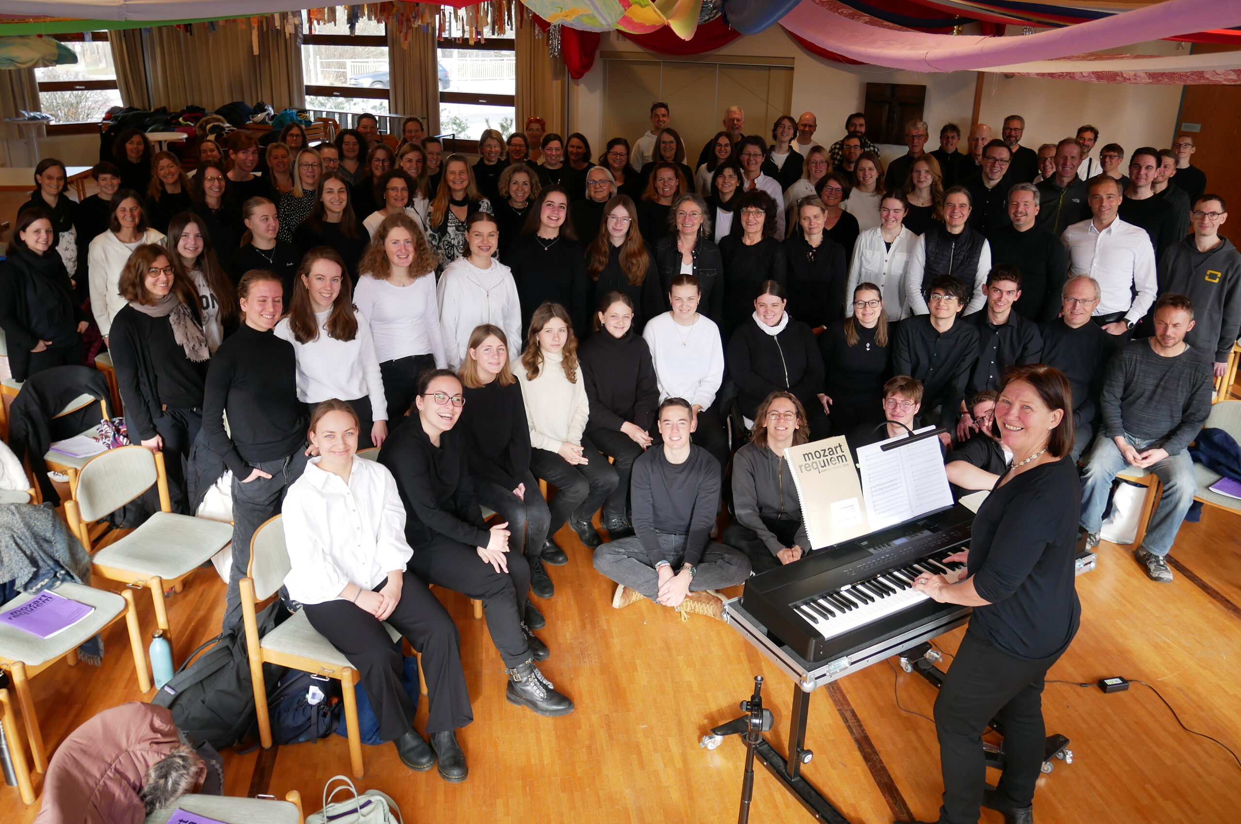 „Alle Aufstehen. Schulterkreisen. Gähnen, Unterkiefer hängen lassen.“ Gymnastik meinen Sie? Falsch geraten. Auch zum guten Singen gehört körperliche Entspannung. Einen ganzen Tag lang für eine Extraprobe haben sich die 100 Sängerinnen und Sänger gerne Zeit genommen, um intensiv am Feinschliff des Werkes arbeiten zu können.