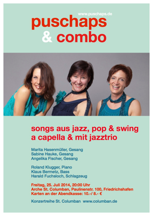 Puschaps & Combo 22. Juli 2014Alle ThemenUlrich Fischer Puschaps & Combo am Freitag, 25. Juli um 20 Uhr in der Arche. Konzertreihe St. Columban. Herzliche Einladung!
